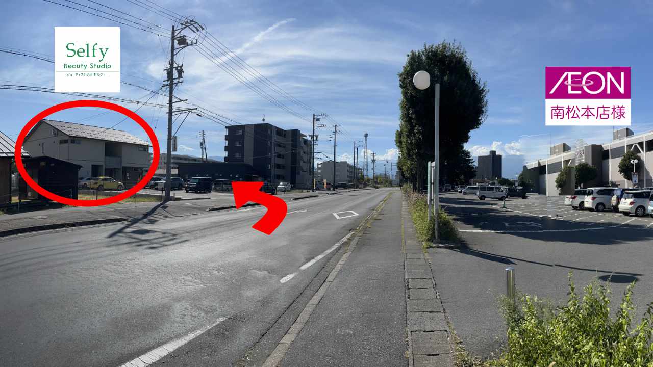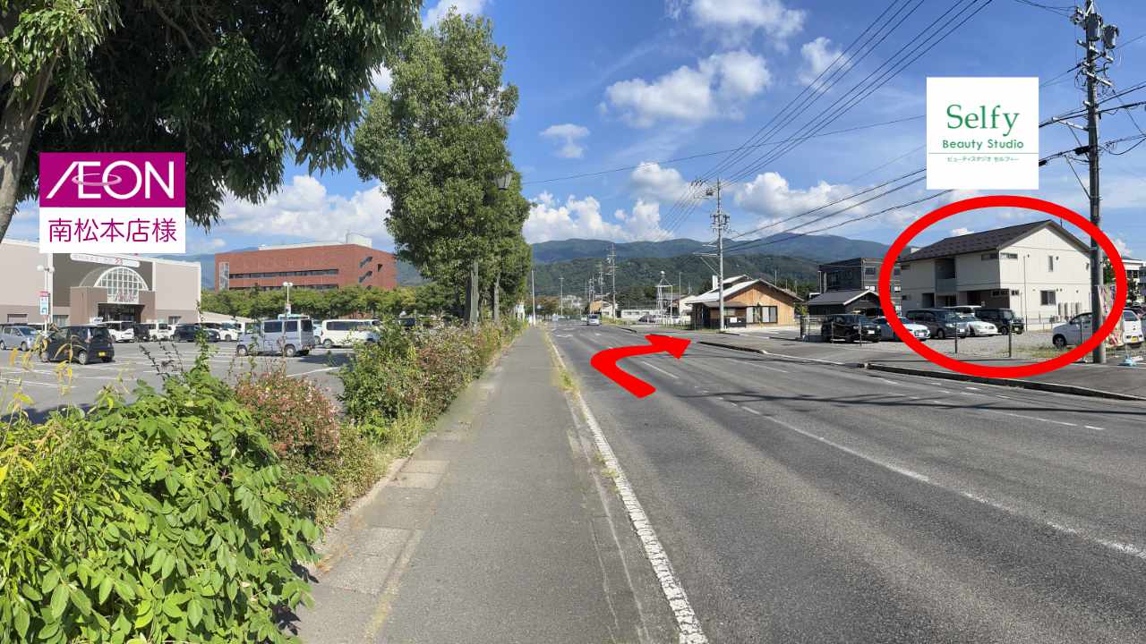 - 最初の交差点を右折。イオン南松本店方面へ。
